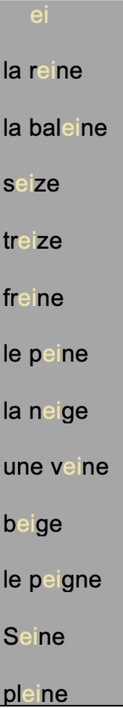 Les mots en « ei» en imprégnation syllabique :
