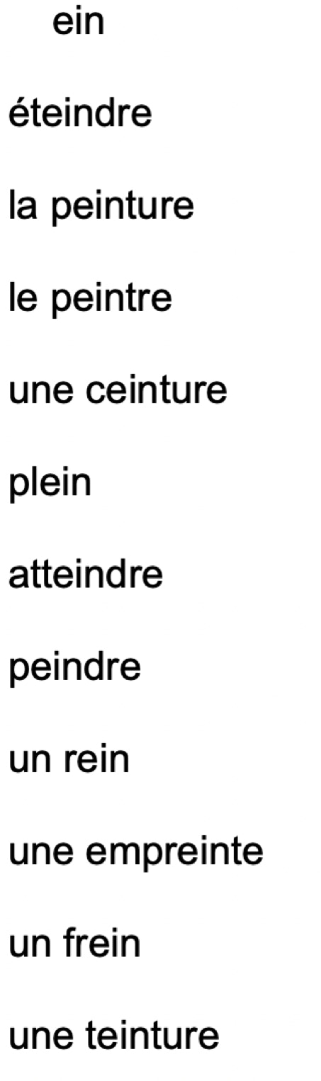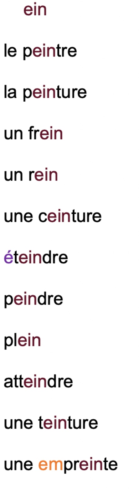 LISTE DE MOTS en couleur :