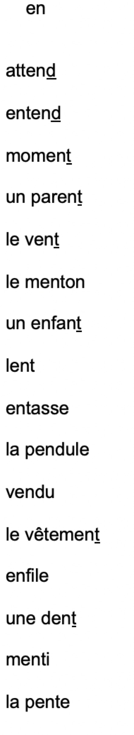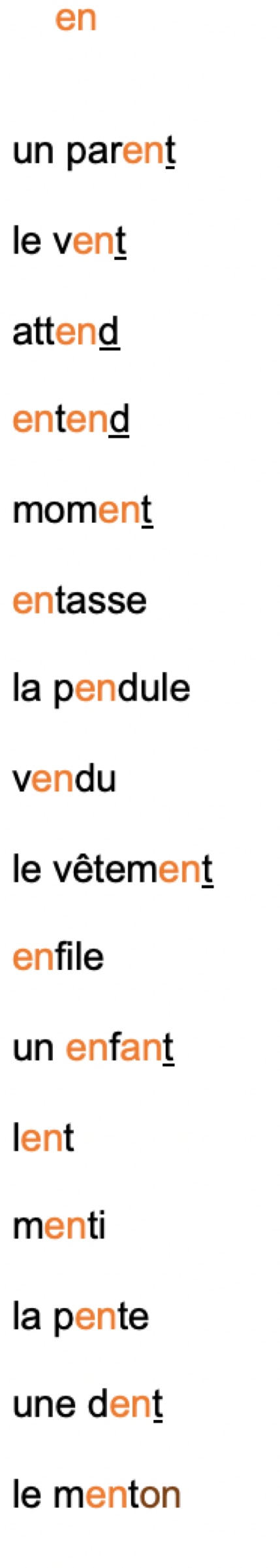 LISTE DE MOTS en noir :
