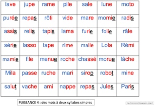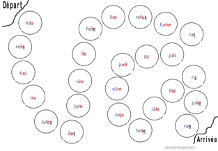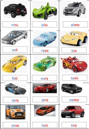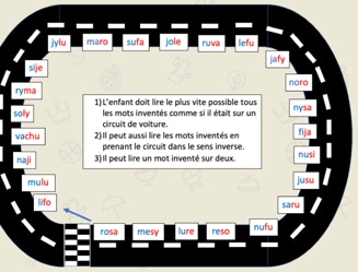 Jeu du circuit de voiture avec des mots inventés de deux syllabes :