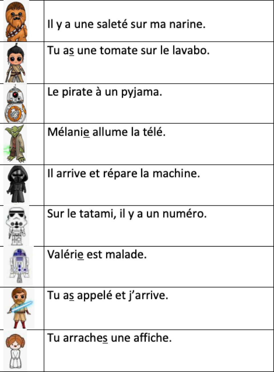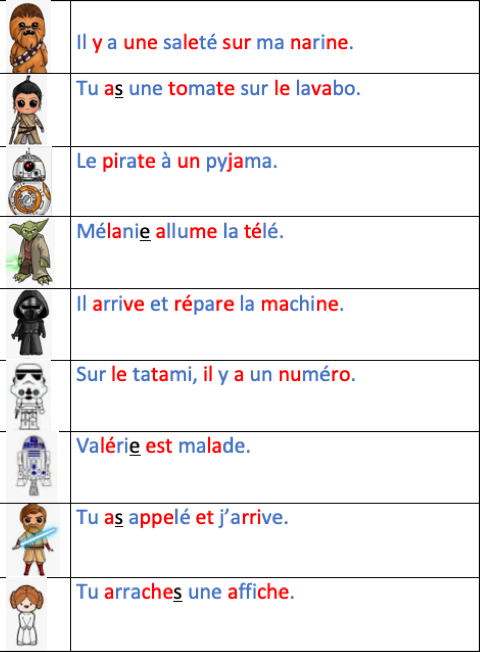 Phrases simples (avec des mots à deux syllabes)