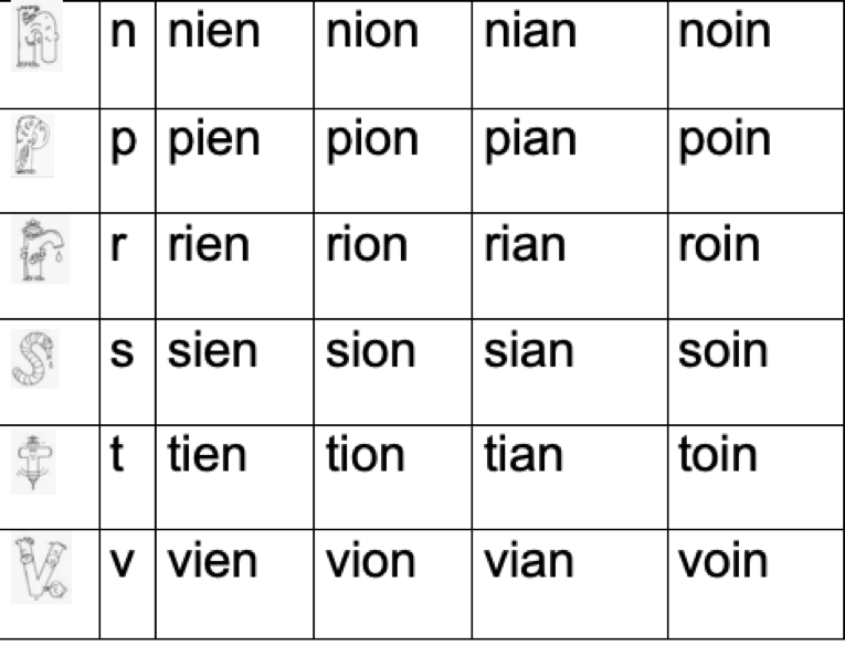 Tableau des syllabes
